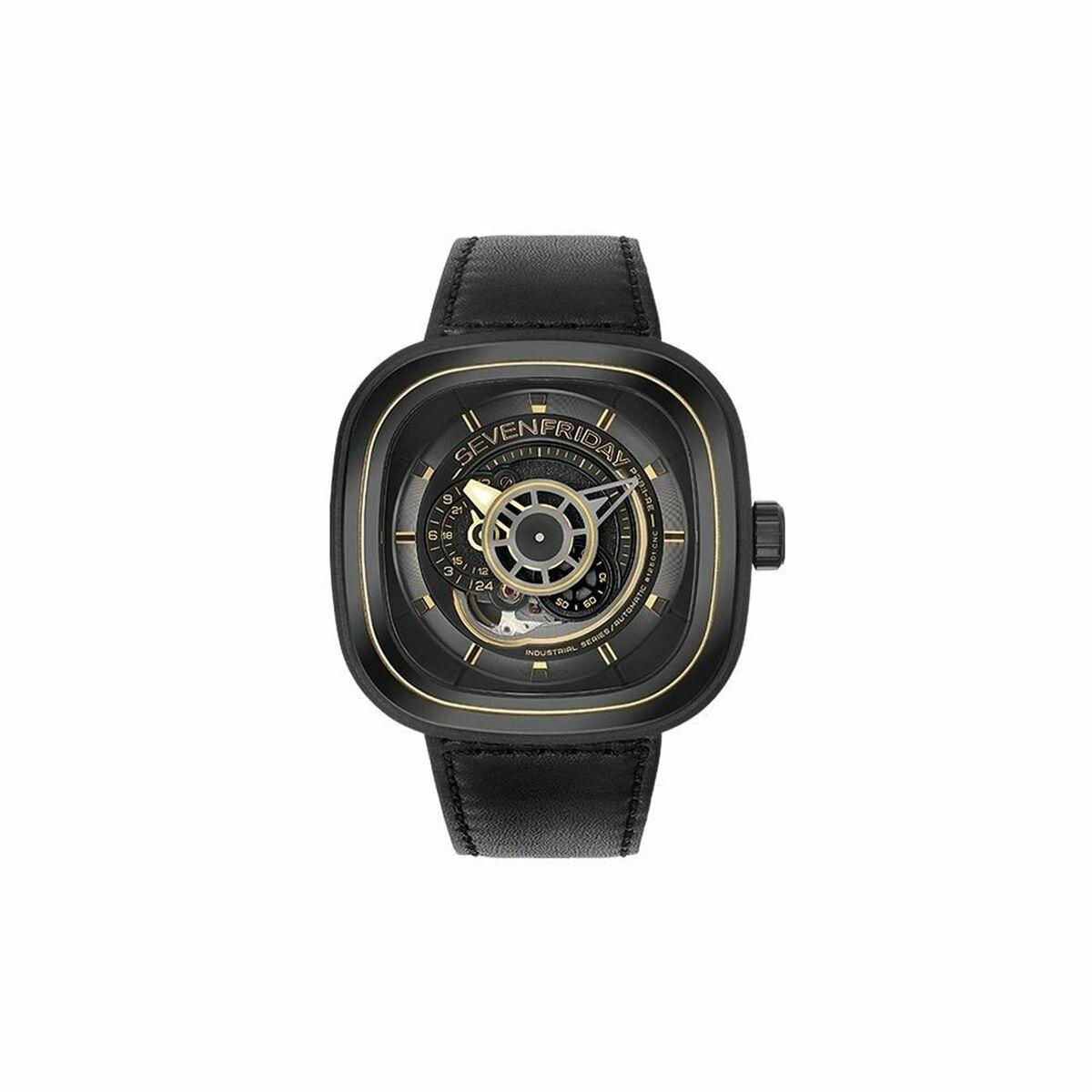 Police herreur PEWJG0005001 – sort skive, guldfarvet lænke